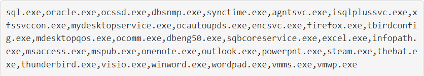 The ransomware will then terminate the following process: